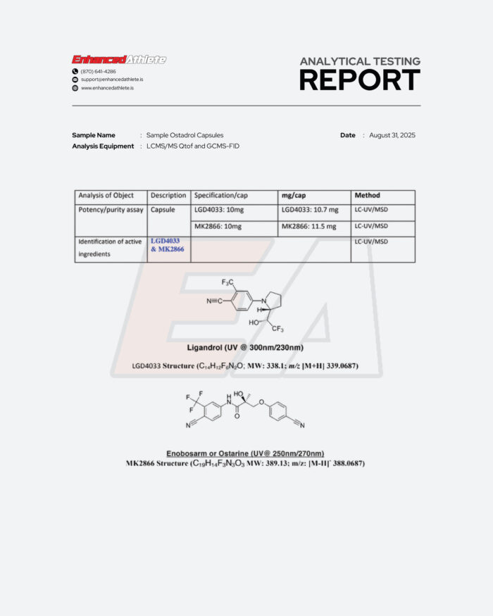 Enhanced Athlete Ostadrol is a blend of Ostarine (MK-2866) and Ligandrol (LGD-4033) selective androgen receptor modulators